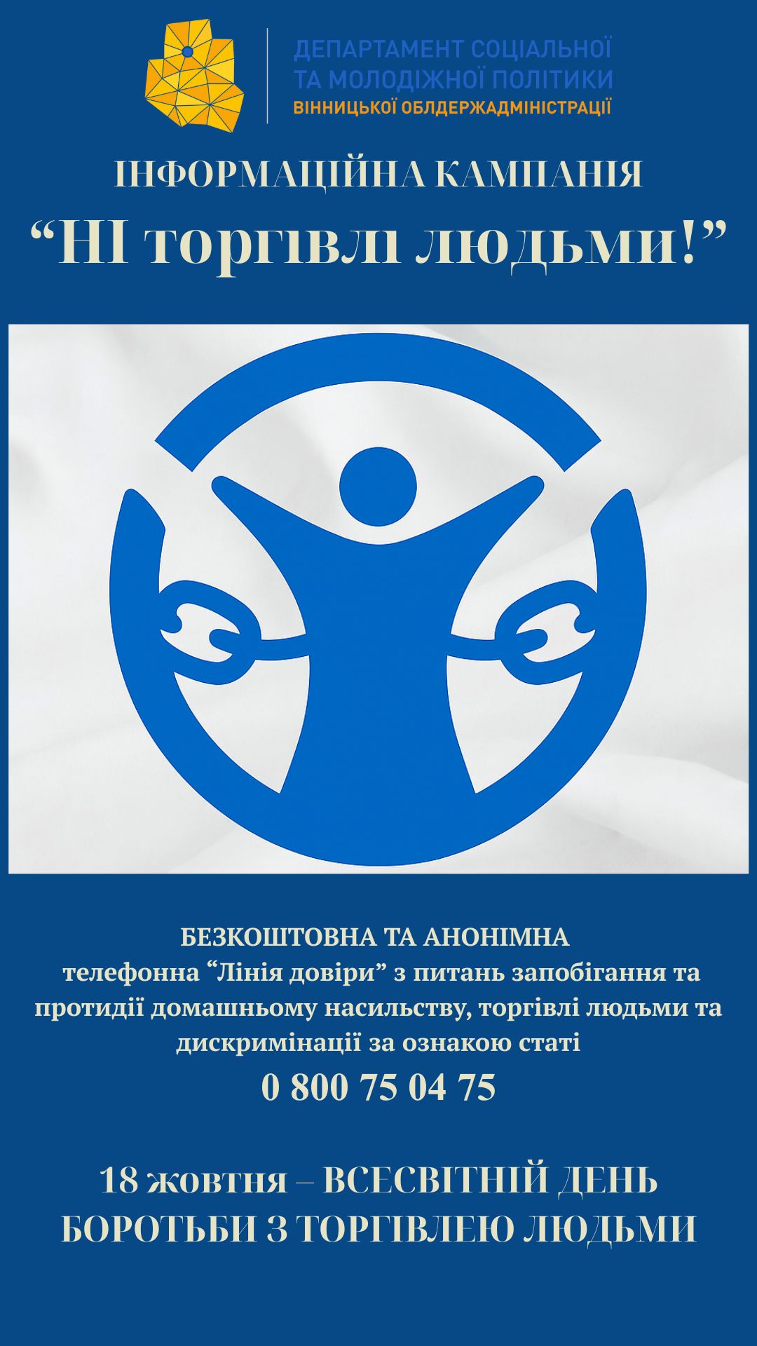 Торгівля людьми – це злочин, коли людину обманом, шантажем чи силою змушують працювати, жебракувати, займатися проституцією, злочинною діяльністю або віддавати органи. Торгівля людьми може трапитись з кожним, незалежно від віку, ...
