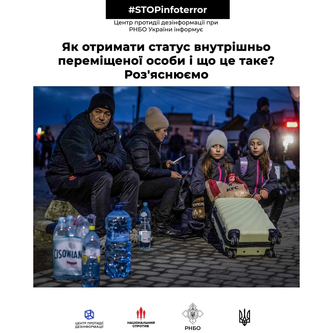 Центр протидії дезінформації при РНБО України спільно з Асоціацією “ЮрФем” роз'яснює щодо статусу внутрішньо переміщеної особи.Внутрішньо переміщені особи (ВПО) - особи, які переїхали з одного регіону в інший, щоб врятуватися ...