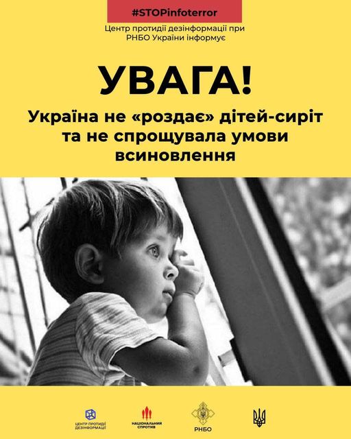 У соцмережах поширюється фото та відео врятованих сиріт. Ці матеріали супроводжуються закликом "швидко всиновити" та про готовність влади України передавати дітей-сиріт у "добрі руки".